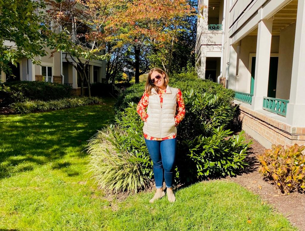 Similar to a jacket, a vest can change everything! I love traveling in leggings, but sadly for me, most of my leggings do not have pockets! Enter: the vest. I love having a vest with pockets, and wearing it over a sweater keeps me warm without overheating, as I tend to do wearing a sweater paired with a coat or full-sleeve jacket.