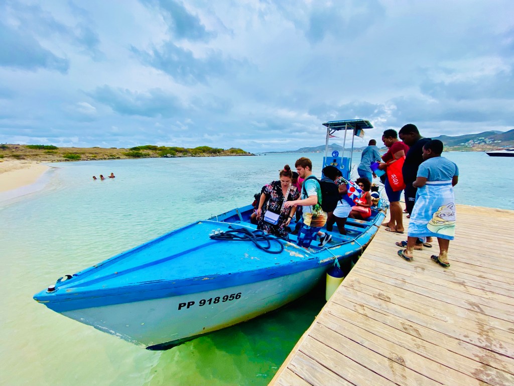 If you want a cushy beach chair, umbrella, and a view of St. Martin across the water, you’ll find that just steps away on the beach where the ferry docks! You’ll need to pay for it, but you’ll have that spot as your own for the entire day, and you can even get food delivered right to your chair!